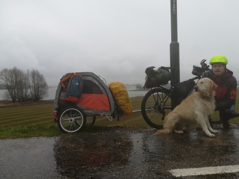 Mit Woody im Anhänger, den Wind und Regen in mein Gesicht peitschend fuhr ich also weiter. Ein Wanderer, den ich auf dem Weg getroffen hatte, sagte mir, dass es gegen Abend aufhören solle zu regnen, was meine Motivation natürlich steigerte.