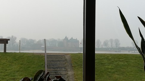 Am Frühstückstisch mit leckerem kuchenähnlichen Gebäck, einem Spiegelei, Rosinenbrötchen und Brot versorgt, genoß ich den Blick aus dem Esszimmerfenster des alten Hauses über den Rhein. Direkt auf der anderen Seite konnte man das „Slot Loevestein“ sehen. Sie erzählten mir die interessante Geschichte über das ehemalige Gefängnis und dem einzigartigen Ausbruch eines seiner Gefangenen. Dieser war so belesen, dass er alle Bücher einer Kiste gelesen und sich anschließend in dieser versteckt hatte, um so ausbrechen zu können. Wie klein oder gelenkig dieser Mensch gewesen sein muss… Oder wie groß die Kiste…