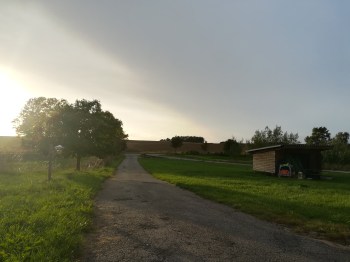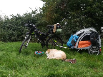 Während ich uns ein geeignetes Schlafplätzchen suchte, machte Woody es sich neben dem Fahrrad auf dem Rasen bequem und schlummerte etwas. Wie so häufig zuckte er hier und da mit den Beinchen und grummelte vor sich hin, als könnte er gar nicht genug vom laufen bekommen. Mir war mittlerweile klar, dass es für die angesetzten 50 Kilometer nicht reichen würde. Aber, warum auch! Wir waren in der Natur, im Freien, voll und ganz unter uns. Mehr brauchen wir doch eigentlich gar nicht, oder? Ich fand einen geeigneten Platz in der Nähe, weitere 15 Kilometer entfernt.