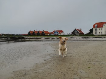 Wir legten jedoch auch gewollte Pausen ein, wie z.B. in Heijlsminde, wo ein riesiger, toller & menschenleerer Sandstrand vor uns lag, den ich Woody natürlich nicht vorenthalten wollte. Hier würde ich wohl auch mein Zelt aufschlagen!, aber nein! Heut geht es mindestens bis Kolding! Dennoch blieben wir hier einige Zeit, machten ein paar Schnappschüsse und tobten ein wenig im Sand, besser gesagt: Woody rekelte und wetzte sich durch den Sand.