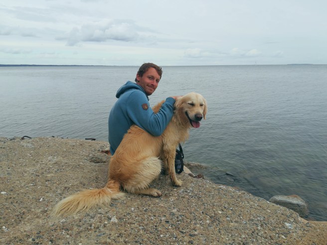 Duschen, Frühstücken, Verweilen am Strand, war der plan. Keine 20 Minuten nach dem Aufwachen standen wir abstiegbereit vor der Klippe und wollten runter. Bepackt mit Rucksack & allemöglichem Gedöns gingen wir die vom Regen aufgeweichte und ohnehin schon Steile Matschküste hinunter. Es kommt wie es kommen musste: alle Viere von mir gestreckt, den Rucksack auf dem Rücken, den Stuhl in der einen und eine Wasserflasche in der andere Hand auf dem Hosenboden. Naja. Immerhin bin ich weich gefallen, dachte ich mir und raffte mich wieder auf. Unten angekommen, machte ich mich bereit meine erste, richtige Outdoor-Dusche zu nehmen. Zuvor hatte ich mich meist mit Katzenwäschen a la Haarewaschen + Waschlappen über Wasser gehalten. Da es heute jedoch endlich mal etwas wärmer zu sein schien und die Sonne strahlte, schien jetzt und hier der perfekte Ort und Augenblick dafür zu sein. Anschließend kochte ich mir etwas Kaffee, frühstückte Brot mit Nutella und versuchte Woody auch etwas zum Fressen zu animieren. Das klappte leider eher weniger, sodass sich erneut Sorgenfalten auf meiner Stirn breit machten. Ich dachte über meine Möglichkeiten nach. Direkt abbrechen und nach Hause fahren oder noch eine Nacht länger bleiben und am Montag zum Tierarzt. Ich entschied mich für letzteres, wobei ich schon einige Male über das Abbrechen nachgedacht hatte. Immerhin war die Fahrt bisher von schlechtem Wetter, platti Reifi und dem kränkelden, mir Sorgen bereitenden Woody überschattet. Morgen wollte ich dann also zurück in Richtung Fredericia, um dort Montag früh direkt zu einem Tierarzt fahren zu können. Dieser Plan besserte meine Laune ein wenig. Immerhin habe ich einen Plan!