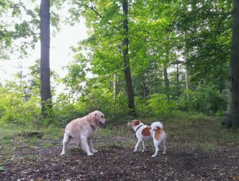 Um halb 7 kam dann der angekündigte Hund samt Johannes‘ Freundin Line. Wir hatten uns von vornherein darauf geeinigt, dass sich die beiden Rüden ohne Leine begrüßen und beschnuppern sollten. Das klappte auch eigentlich ganz gut. So gut, dass Woody mit dem Schnuppern gar nicht mehr aufhören wollte, was Nello gar nicht so toll zu finden schien.